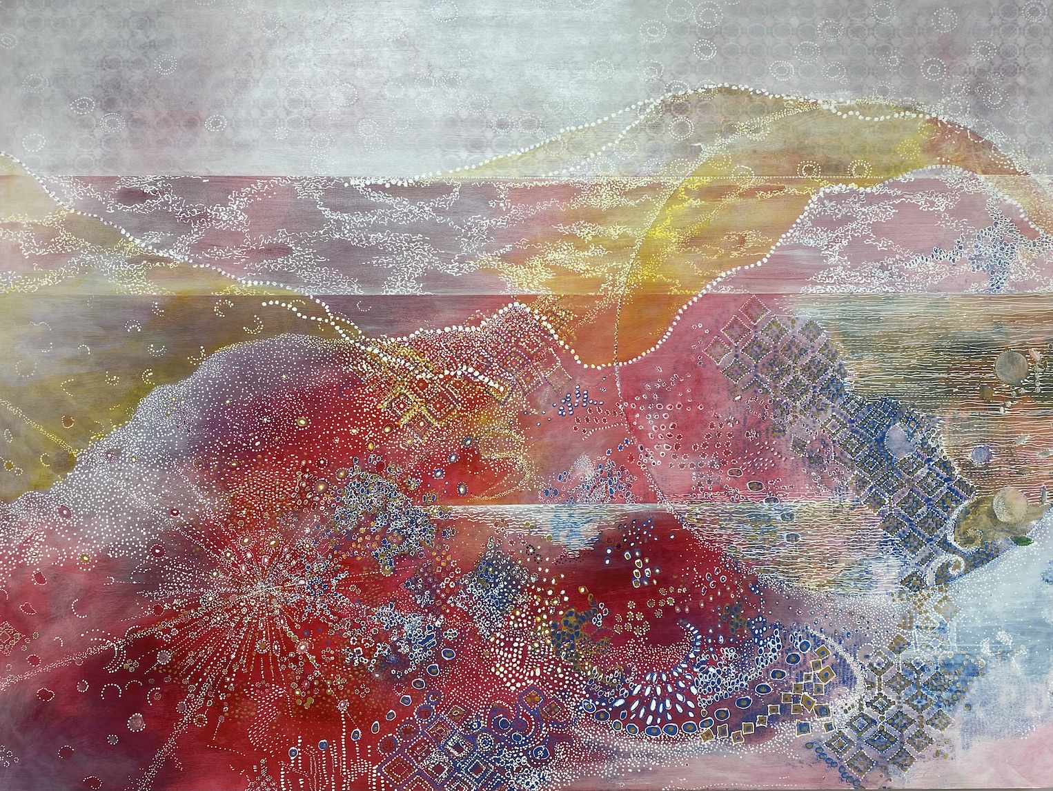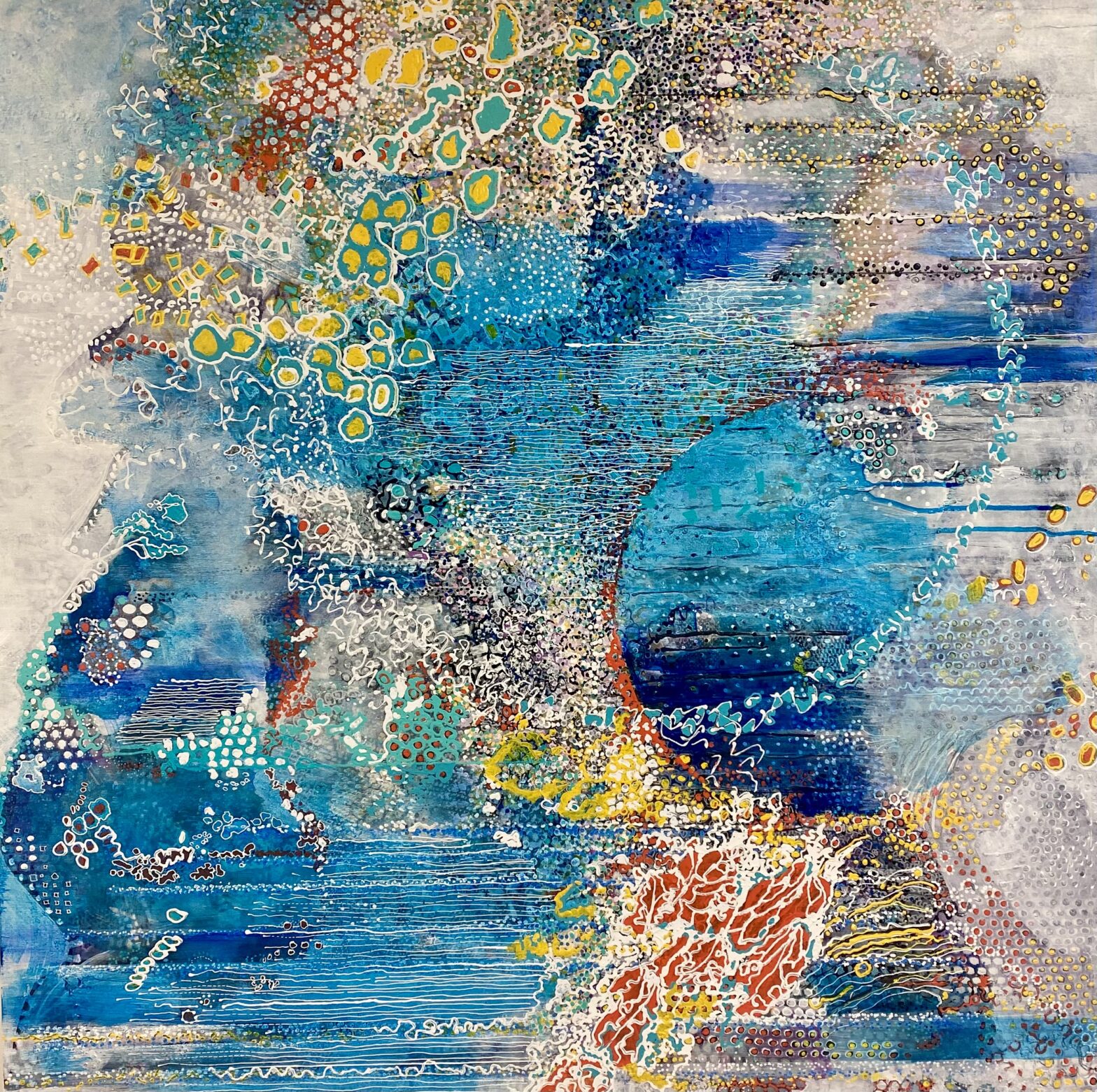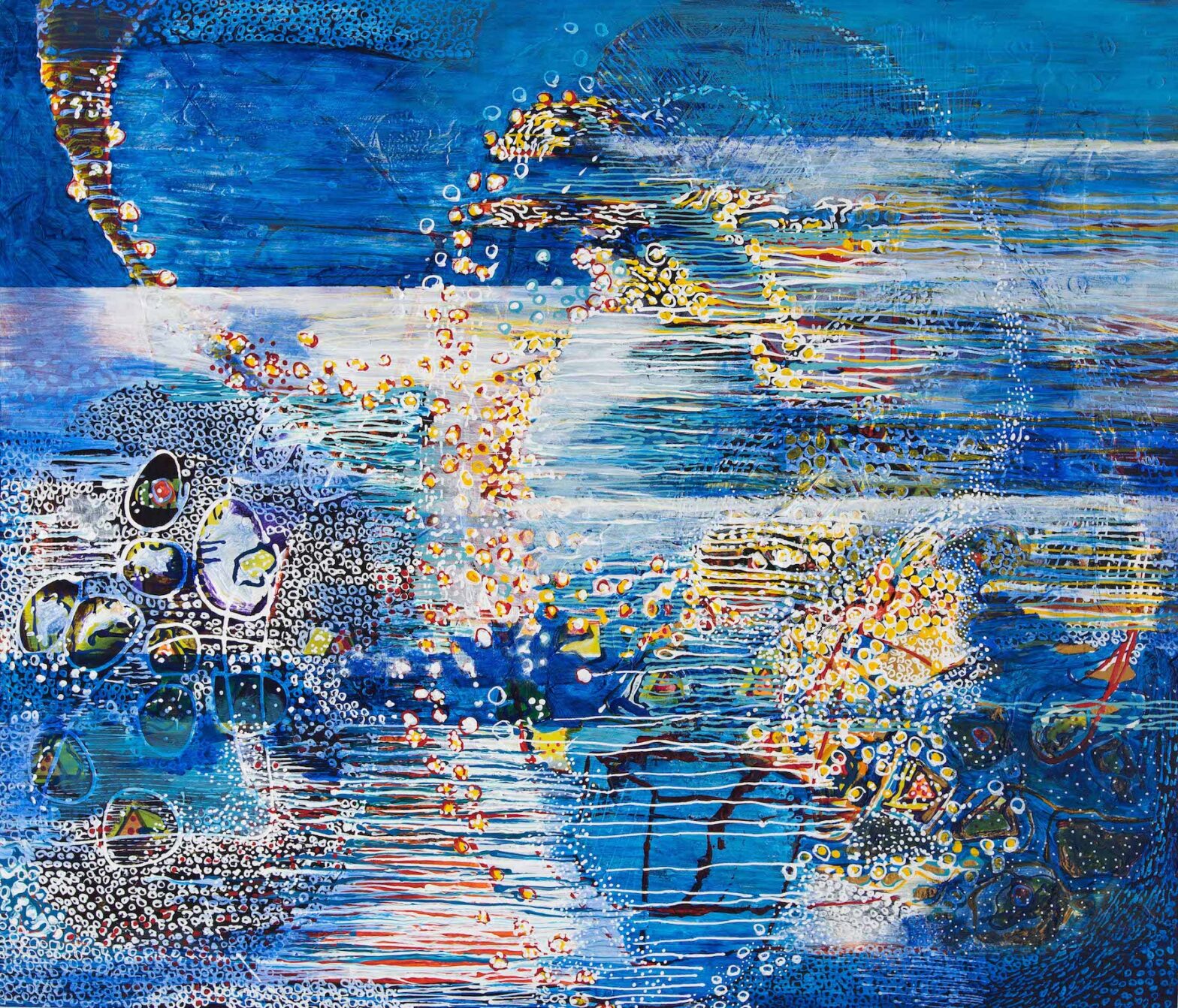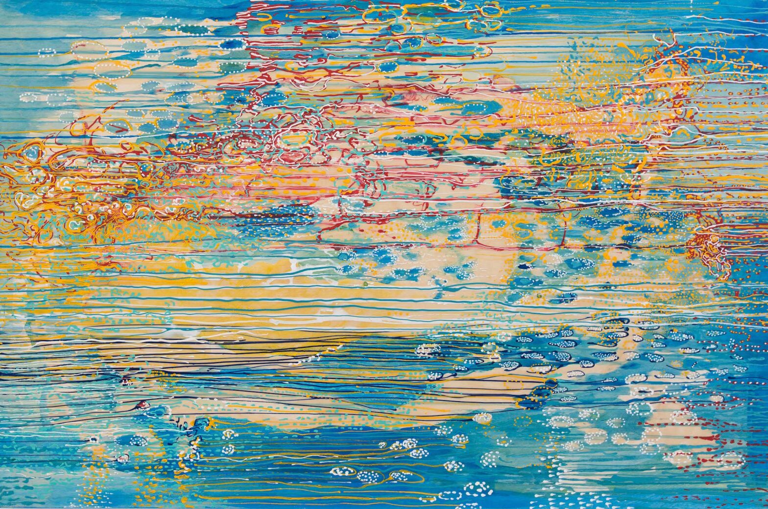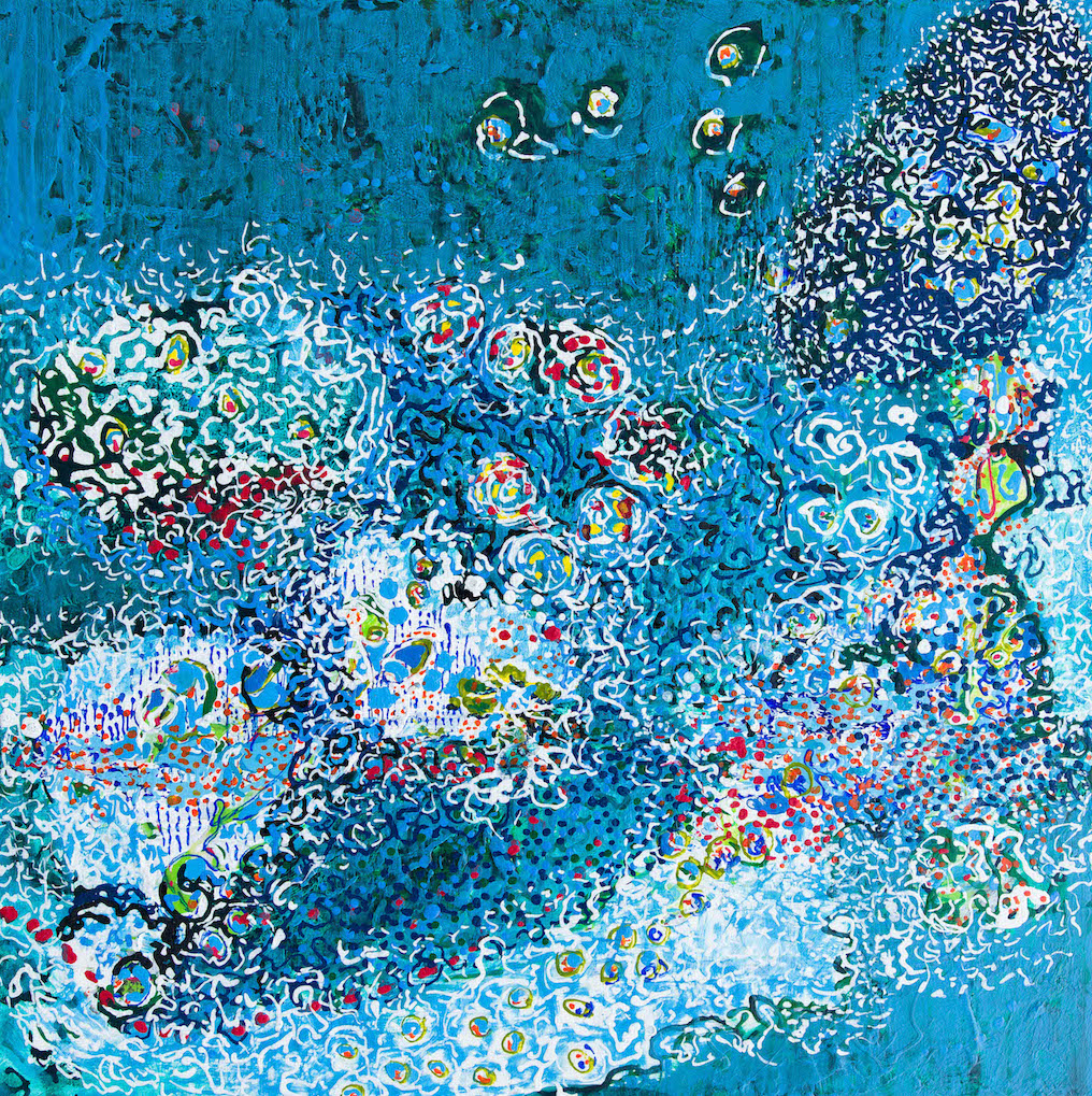 L’abondante diversité des signes visuels utilisés, lignes d’horizon inventées, motifs intuitifs, couleurs lumineuses permet au regardeur une lecture singulière, positive et sans cesse en redécouverte.