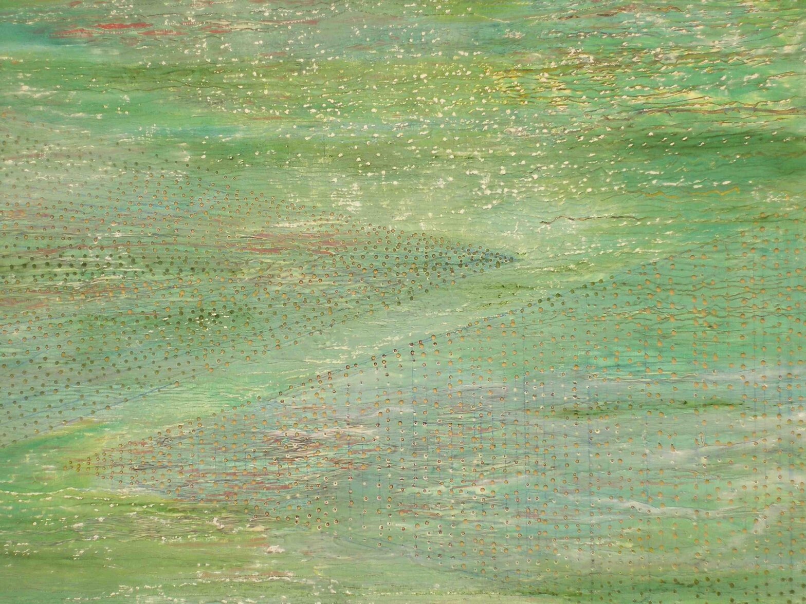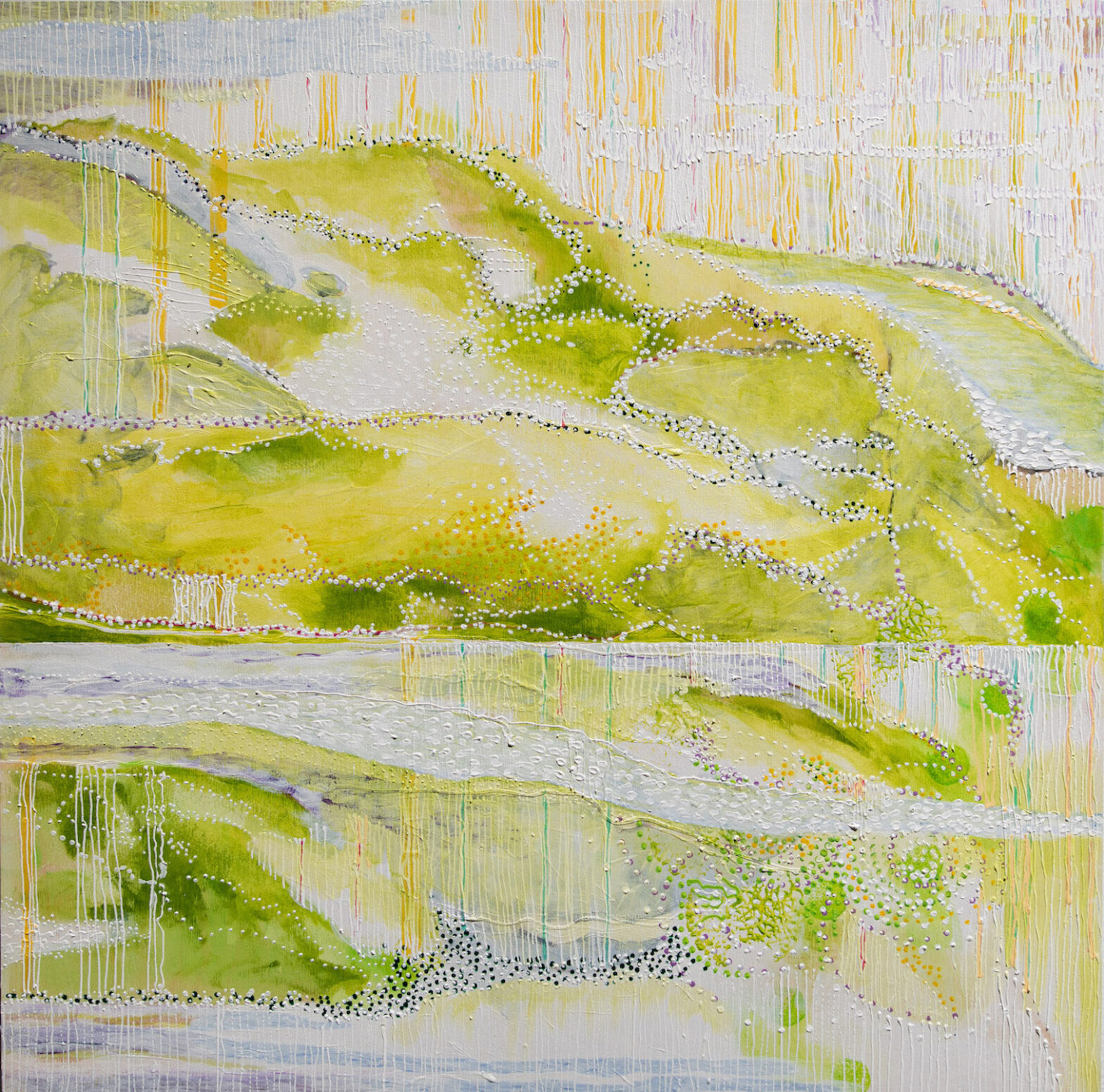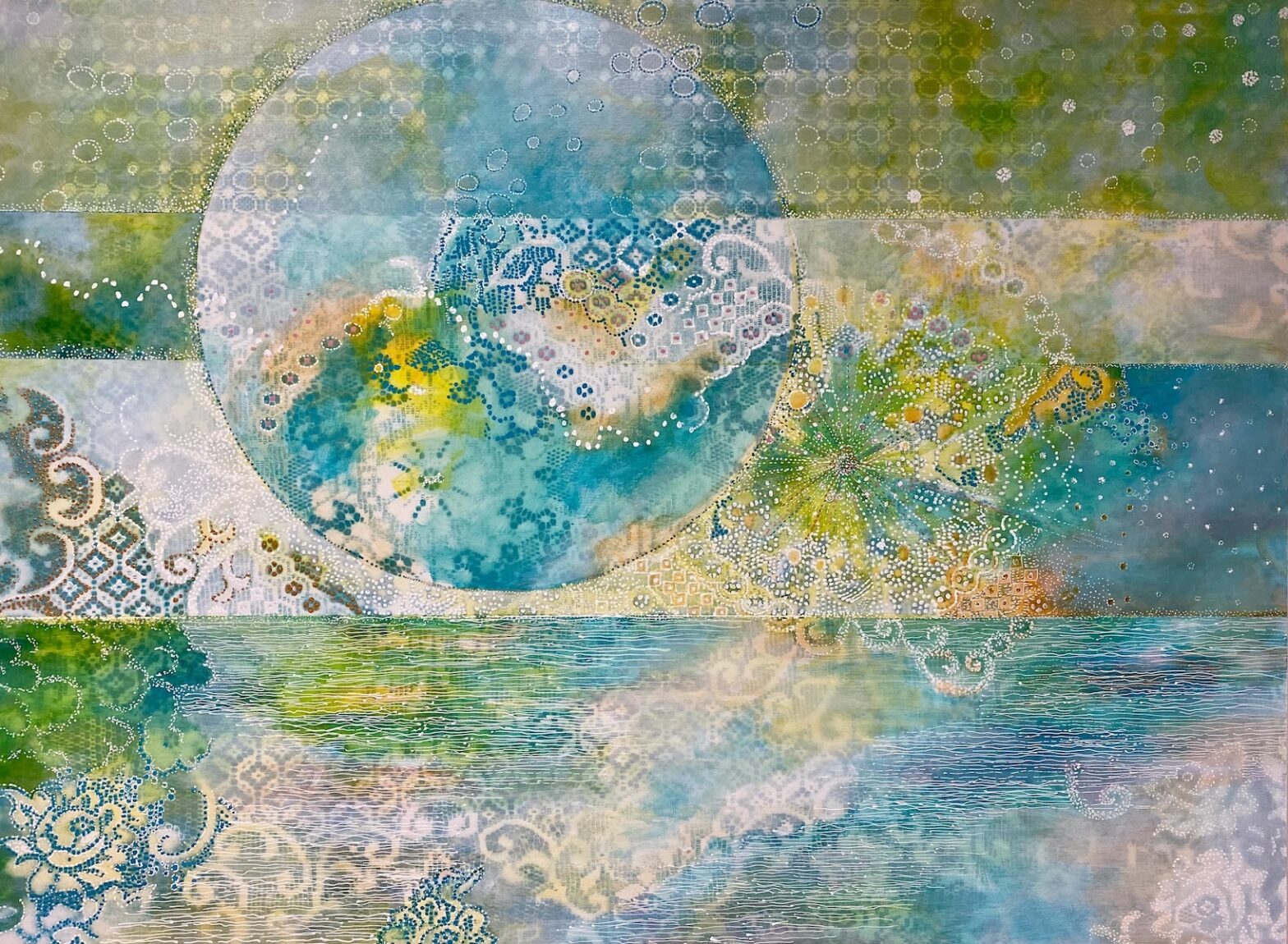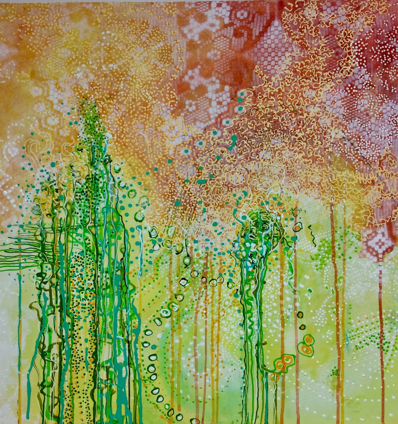 L’abondante diversité des signes visuels utilisés, lignes d’horizon inventées, motifs intuitifs, couleurs lumineuses permet au regardeur une lecture singulière, positive et sans cesse en redécouverte.