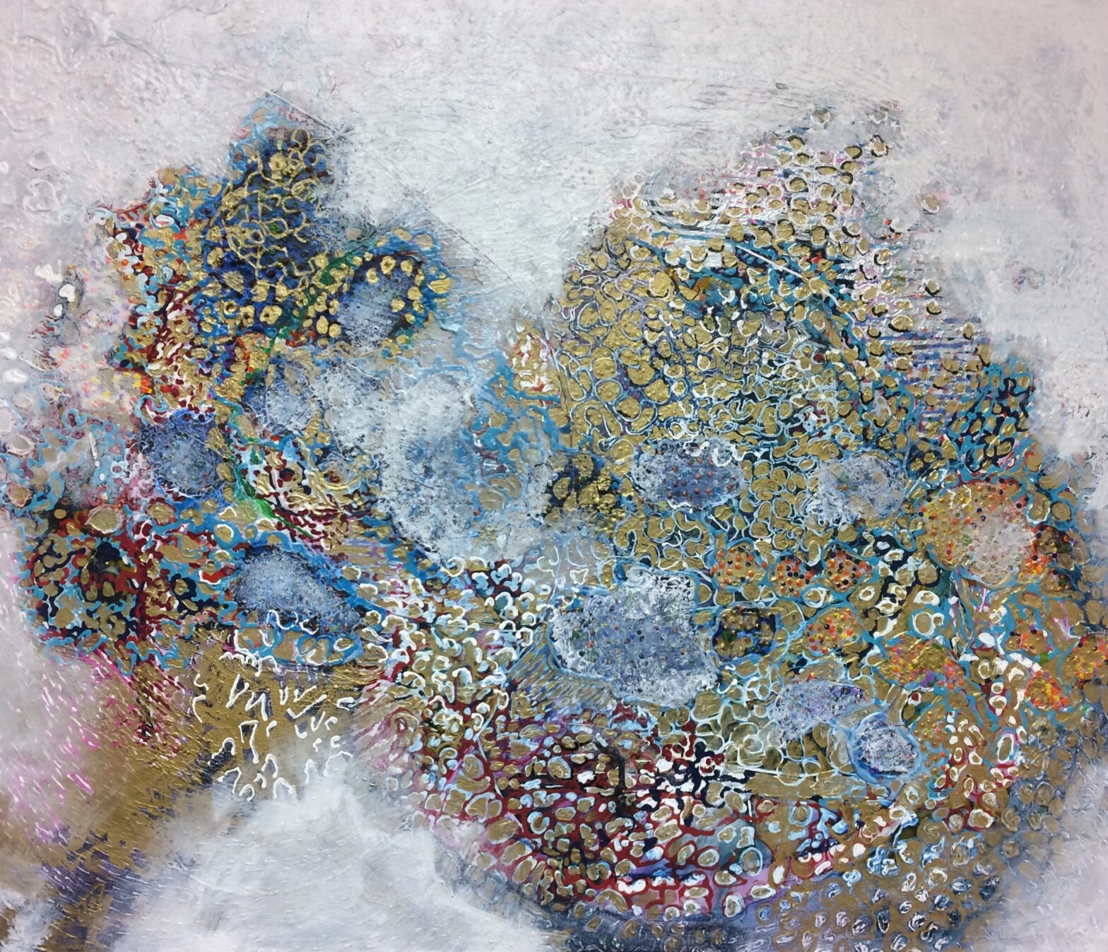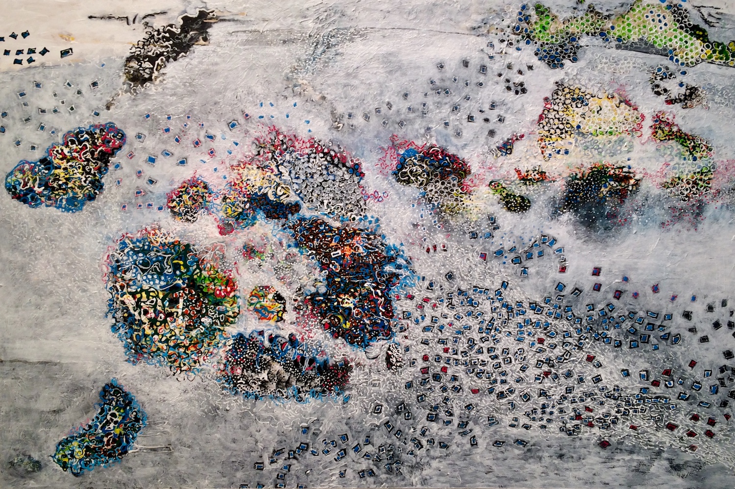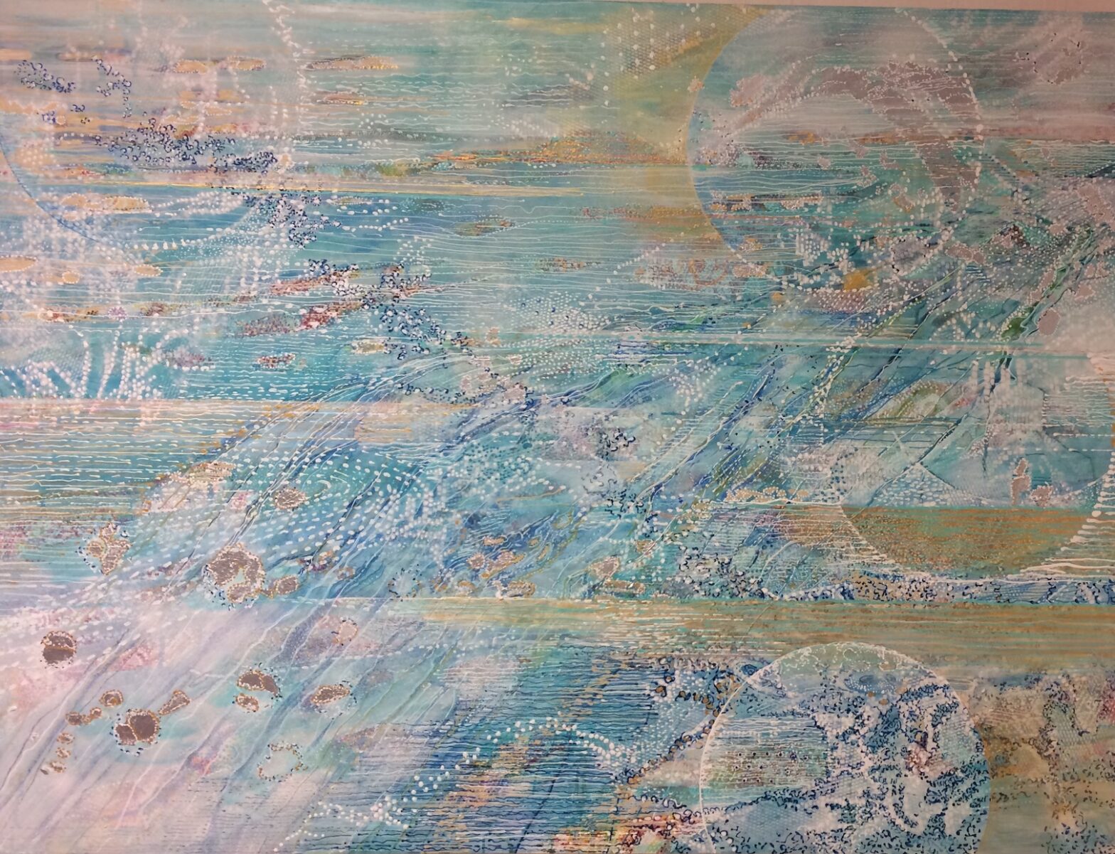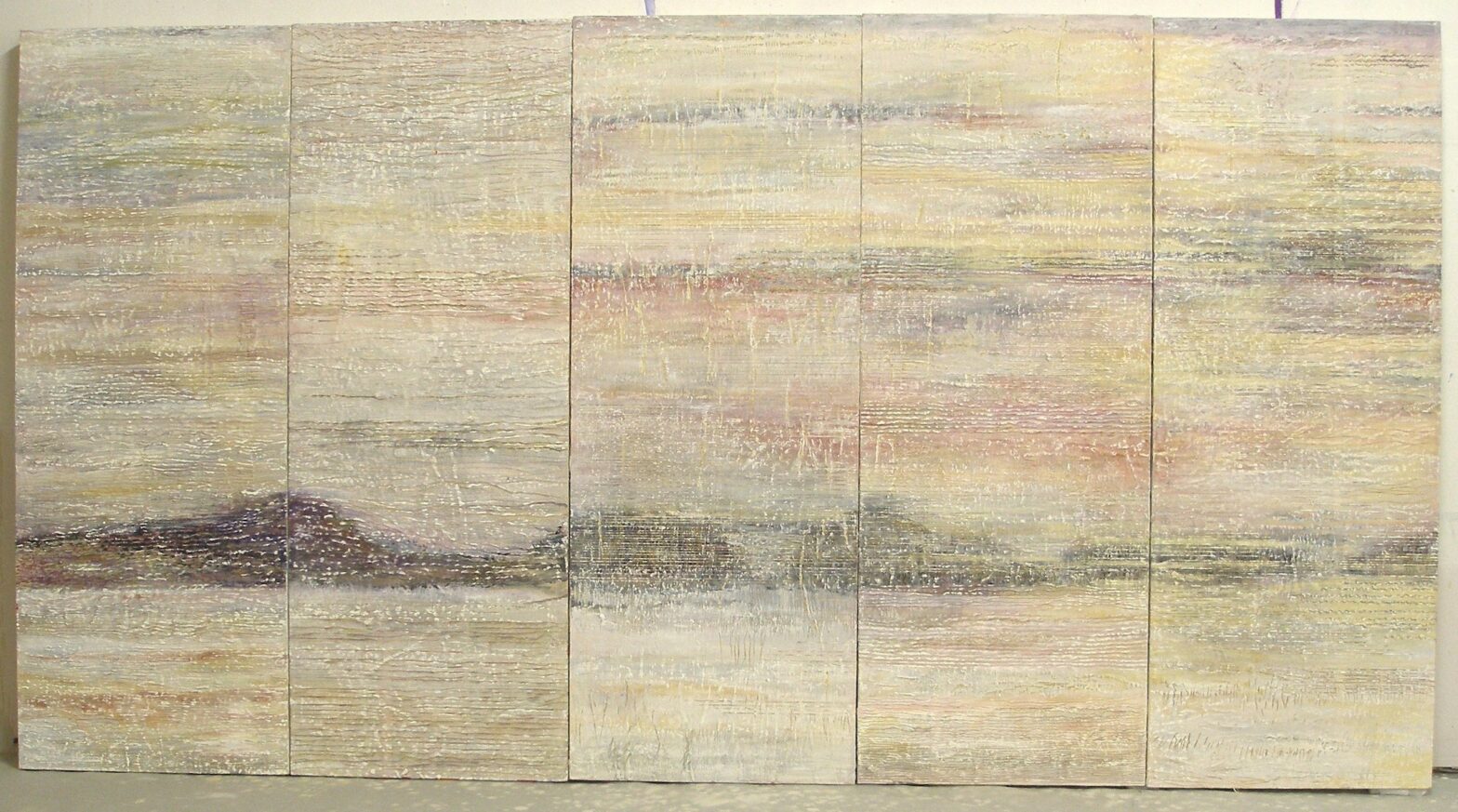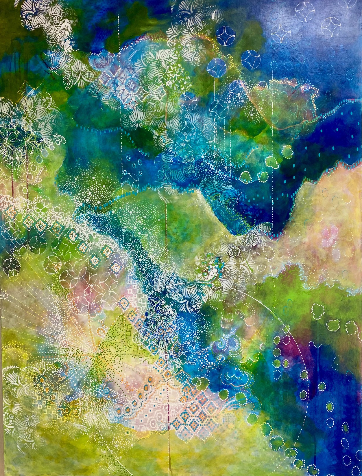 L’abondante diversité des signes visuels utilisés, lignes d’horizon inventées, motifs intuitifs, couleurs lumineuses permet au regardeur une lecture singulière, positive et sans cesse en redécouverte.