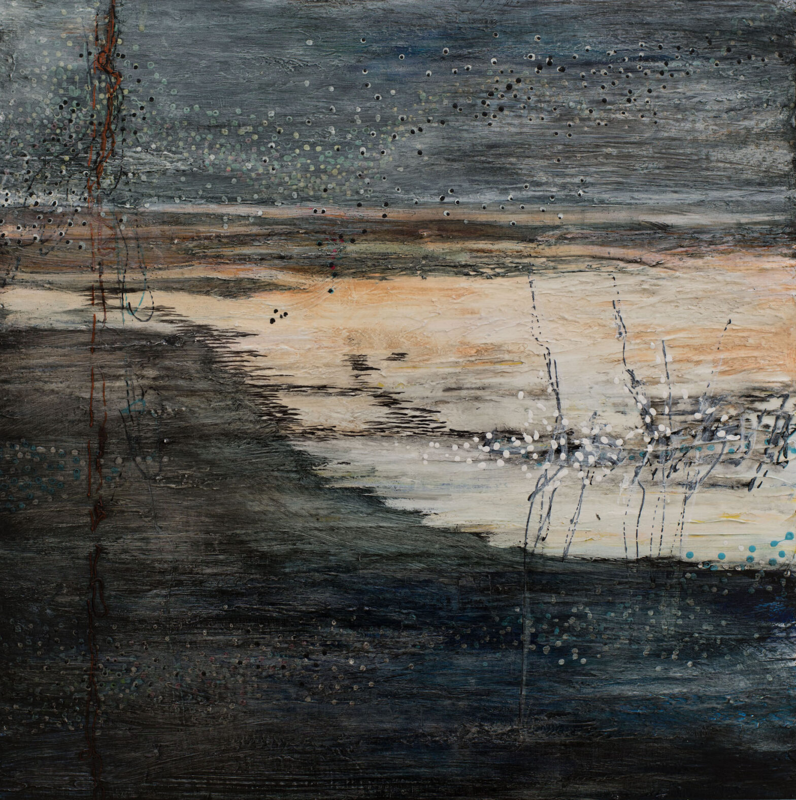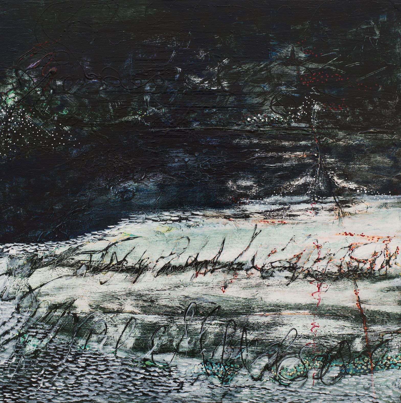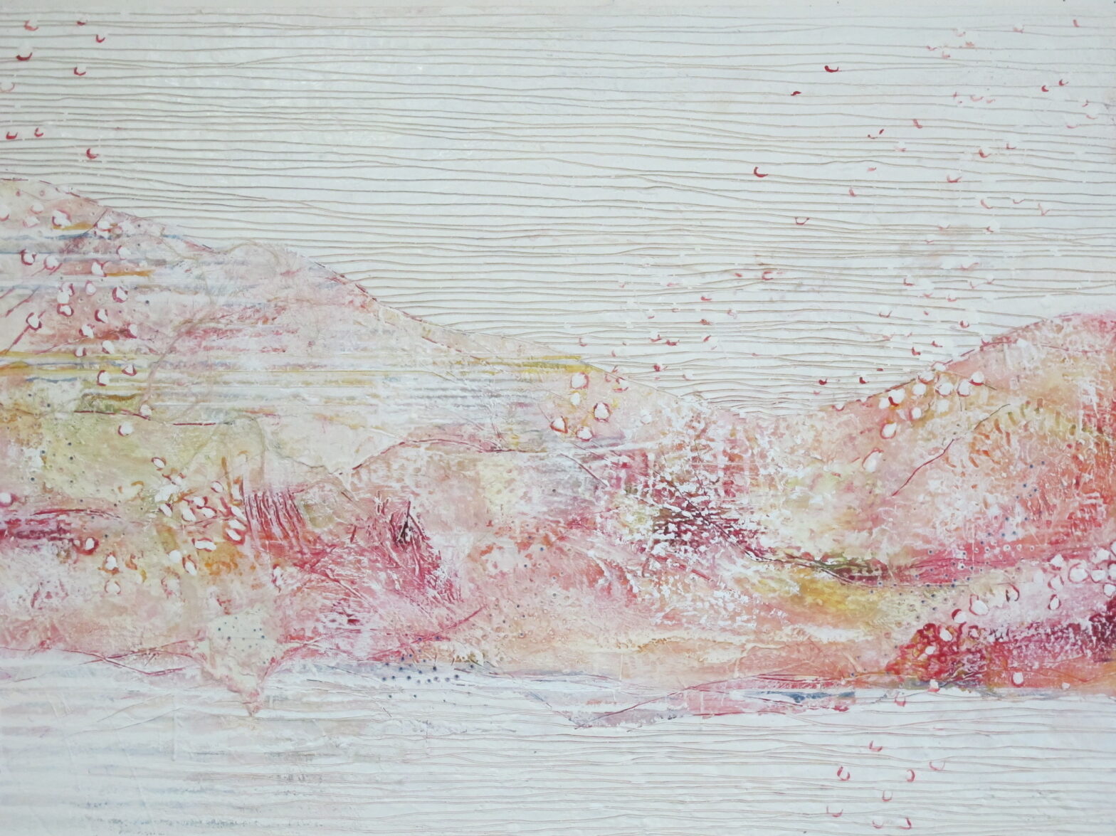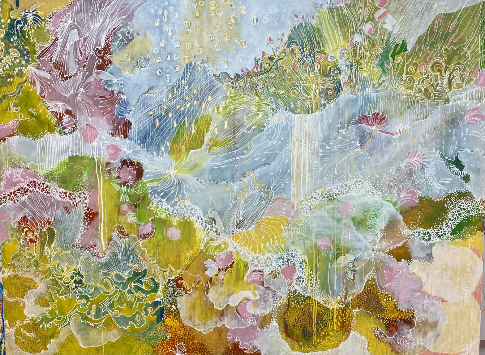 L’abondante diversité des signes visuels utilisés, lignes d’horizon inventées, motifs intuitifs, couleurs lumineuses permet au regardeur une lecture singulière, positive et sans cesse en redécouverte.